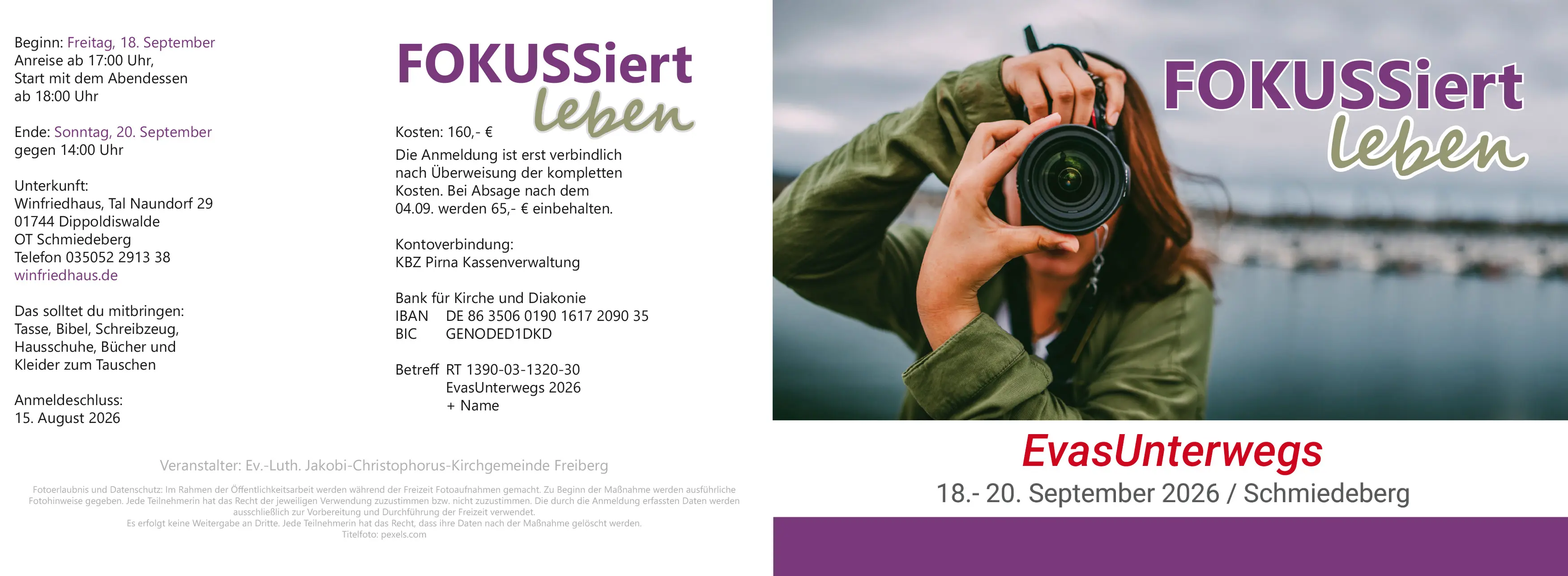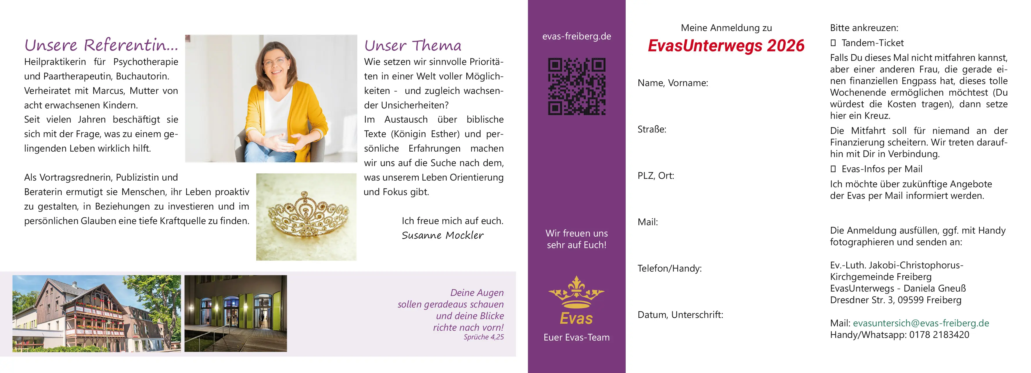 wir laden Dich herzlich zur Frauenrüstzeit EvasUnterwegs nach Schmiedeberg ein.